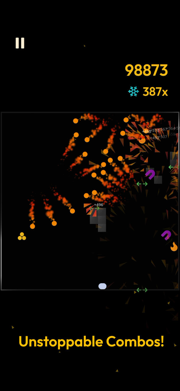Hit blocks in quick succession and your multiplier climbs. The higher it goes, the more each block is worth. Some powerups help keep the streak alive.